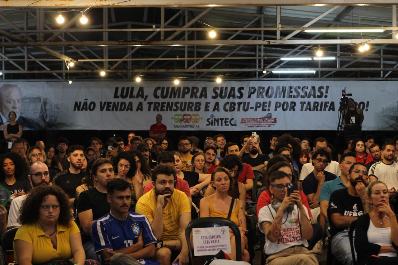 As atividades são uma das estratégias do sindicato de mobilizar a classe trabalhadora para lutar contra a privatização, ampliando o debate e criando espaços de diálogo com diversos agentes sociais. O debate contou com a presença de centenas de pessoas, dentre elas lideranças sindicais metroferroviárias do Distrito Federal e de Belo Horizonte, além de metroviários da Trensurb, sindicalistas, partidos políticos, militantes populares e de movimentos sociais e estudantes. O apoio dos moradores da Ocupação Periferia no Centro foi fundamental para garantir a acolhida e organização do auditório lotado do início ao fim. Os ingressos, que esgotaram em poucos dias, tinham como contrapartida a doação de alimentos para as cozinhas solidárias da ocupação.