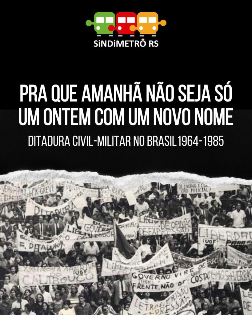 Na madrugada do dia 1° de abril de 1964, o Brasil entrou em um dos piores períodos de sua historia. Com patrocínio dos Estados Unidos e apoio de grandes empresários brasileiros, o golpe militar reprimiu o movimento dos trabalhadores, acabou com as liberdades democráticas e instituiu uma política econômica que destruiu a renda da população.